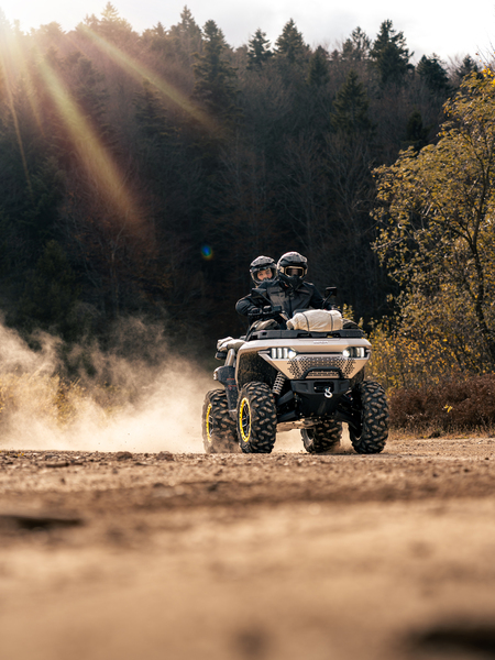 500 cm³ V-Twin mit 48 PS, wählbarem 2WD/4WD-Antrieb mit Differenzialsperre, CVT-Getriebe, einstellbarem Fahrwerk, LED-Matrix-Beleuchtung und elektronisch einstellbaren Fahrmodi. Die Kombination aus robuster Stahl-/Aluminium-Konstruktion und komfortabler Ausstattung macht das Redstone 500 R2 ideal für Arbeit, Freizeit oder Gelände, ein echtes All-Terrain-Fahrzeug.